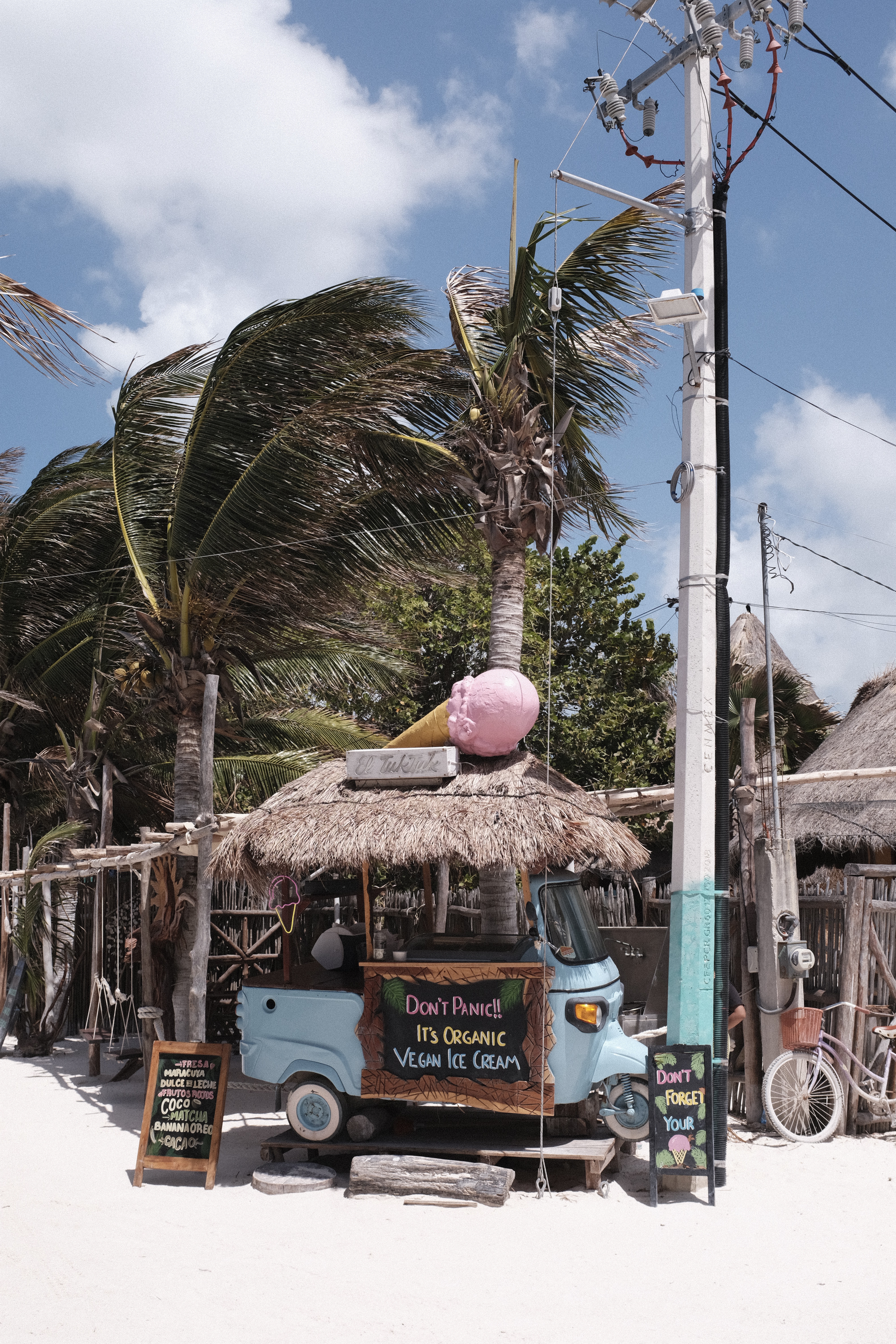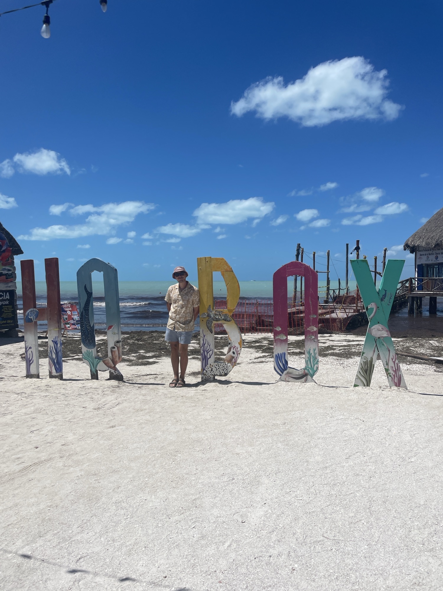 Holbox ist eine kleine Insel im Norden Yucatáns – und trotz wachsendem Tourismus hat sie ihren ganz eigenen Charme behalten. Früher war sie eine reine Fußgängerinsel, heute sind es vor allem Golf-Carts, die das Straßenbild prägen. Dennoch: überall Sand, bunte Häuser, entspannte Bars und traumhafte Strände. Wir blieben drei Nächte, hätten aber auf jeden Fall länger bleiben können. Der Vibe ist einfach einzigartig – ein Ort zum Runterkommen.